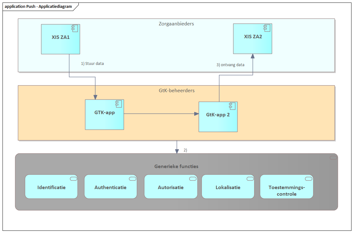 Het uitwisselpatroon ‘Push A' beschrijft een push mechanisme waarin direct de gegevens gestuurd worden van zorgverlener A naar zorgverlener B.