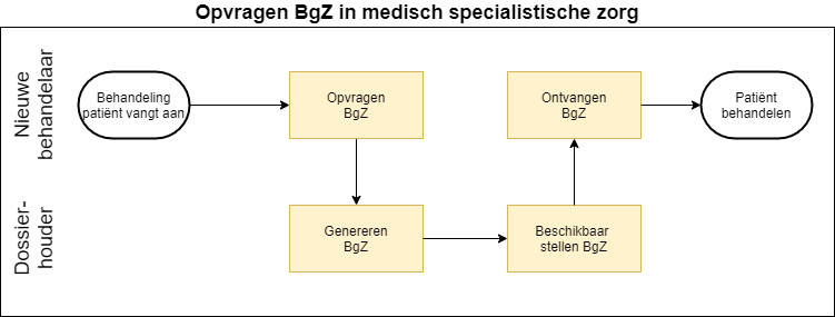 Deze pagina beschrijft de uitwisseling in het geval van een opvraging van de BgZ bij een eerdere behandelaar. De Z1.2.2 | TTA Retrieving BgZ - FHIR Direct Pull beschrijft de technische invulling van deze uitwisseling binnen Twiin.